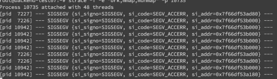 此外在系统层面,我们还可以使用strace命令来监控内存分配 strace -f -e "brk,mmap,munmap" -p pid这边内存分配信息主要包括了pid和内存地址。